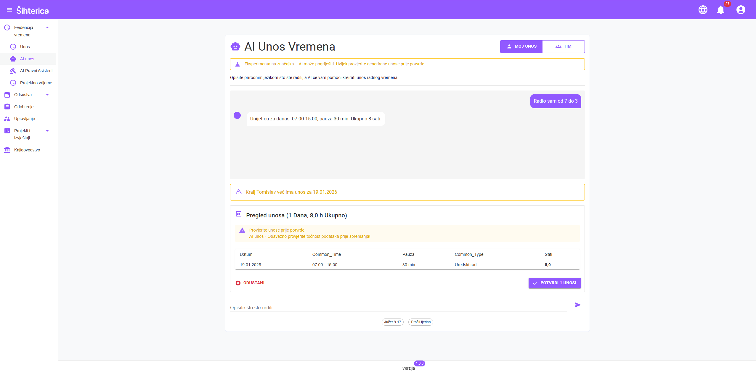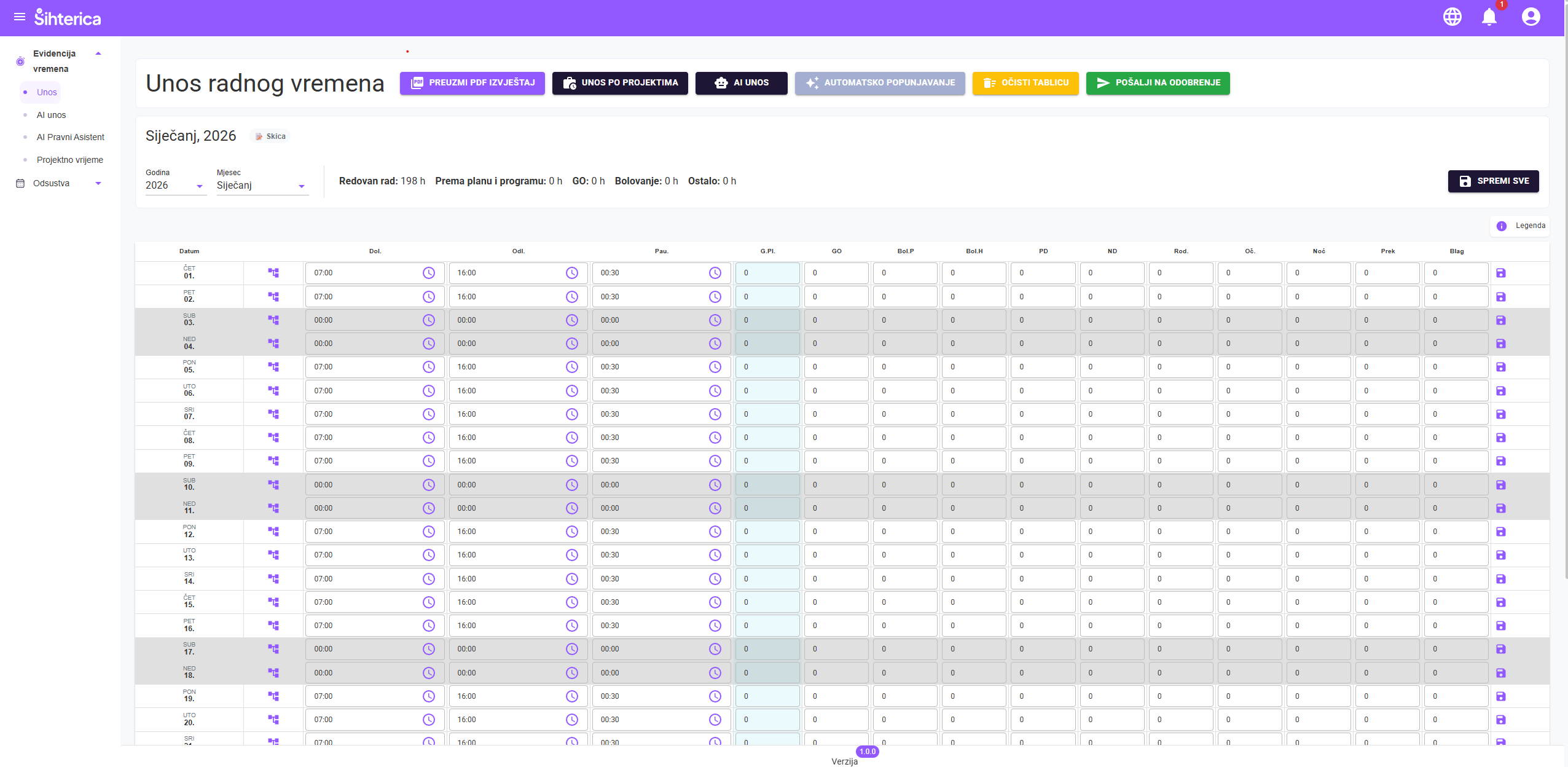 Definirajte standardno radno vrijeme za svakog zaposlenika, organizirajte ih u timove i dodijelite odgovarajuće uloge. Fleksibilna konfiguracija prilagođena vašoj organizacijskoj strukturi.