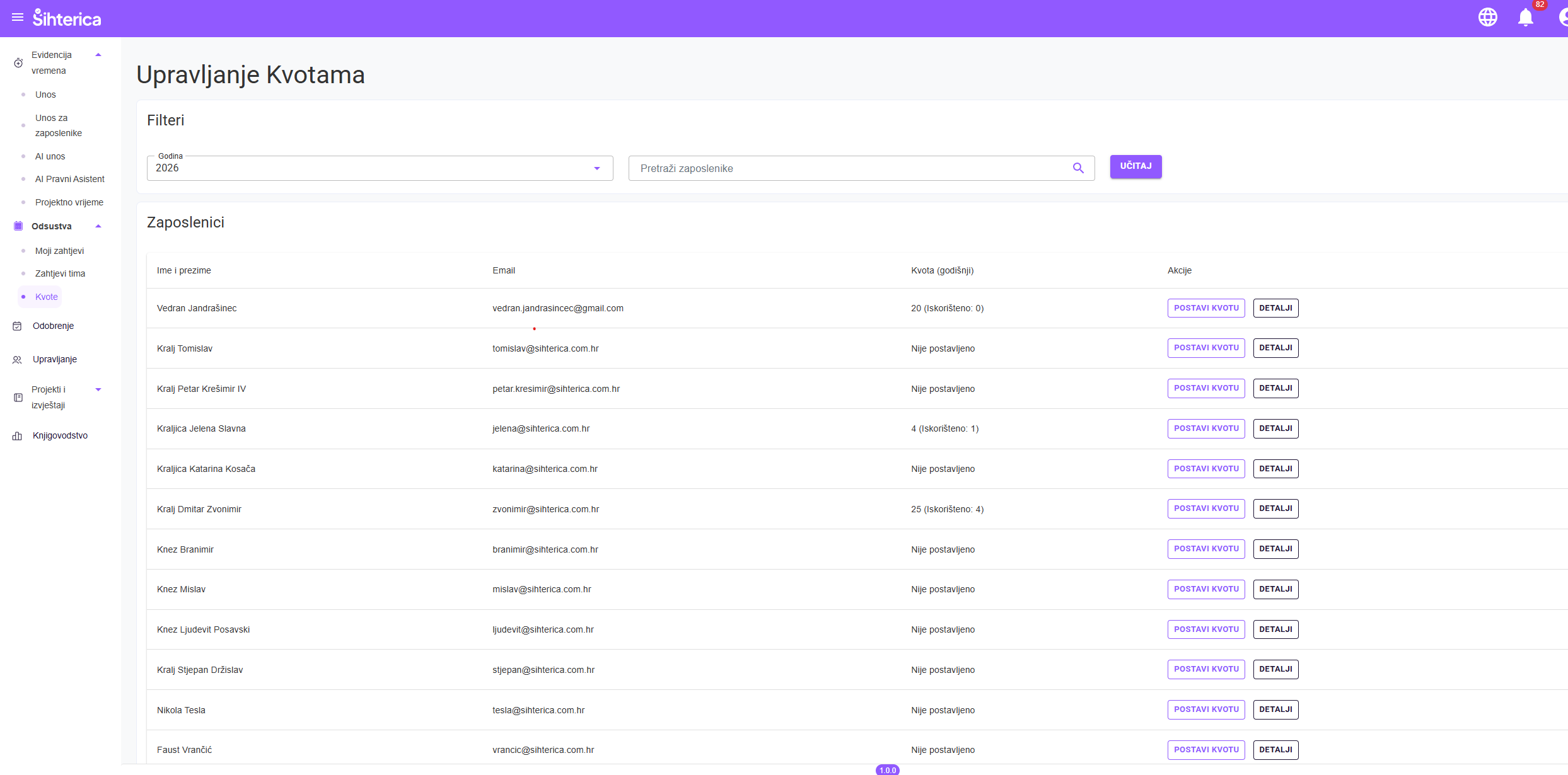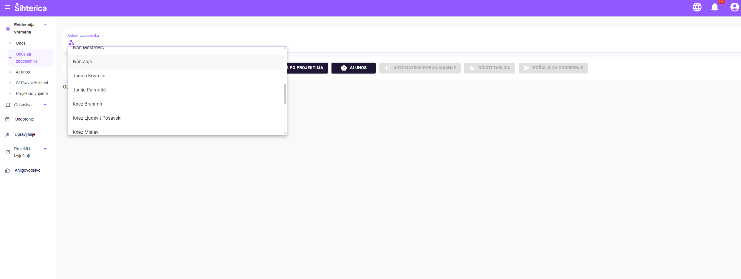 Pronađite zaposlenike čije evidencije želite pregledati pomoću pretrage po imenu. Jednostavno upišite ime i brzo pristupite njihovim podacima.
